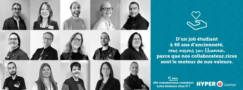 Notre Hyper U est situé à 22 km au sud de Rennes. Nous faisons partie de la coopérative U de magasins indépendants. Depuis 1978 sur Guichen, notre histoire est avant tout celle d’une famille proche de ses clients et proche de ses équipes depuis 4 générations sur le territoire. Commerce de proximité qui connaît ses clients et qui prône la convivialité, nous avons à cœur de proposer des prix bas et une large gamme de produits et de services nécessaires et innovants pour simplifier votre quotidien. Fort de ses plus de 230 collaborateurs, notre collectif s’engage autour de valeurs telles que le respect, l’honnêteté, la performance, la qualité, l’amélioration continue et la convivialité.-